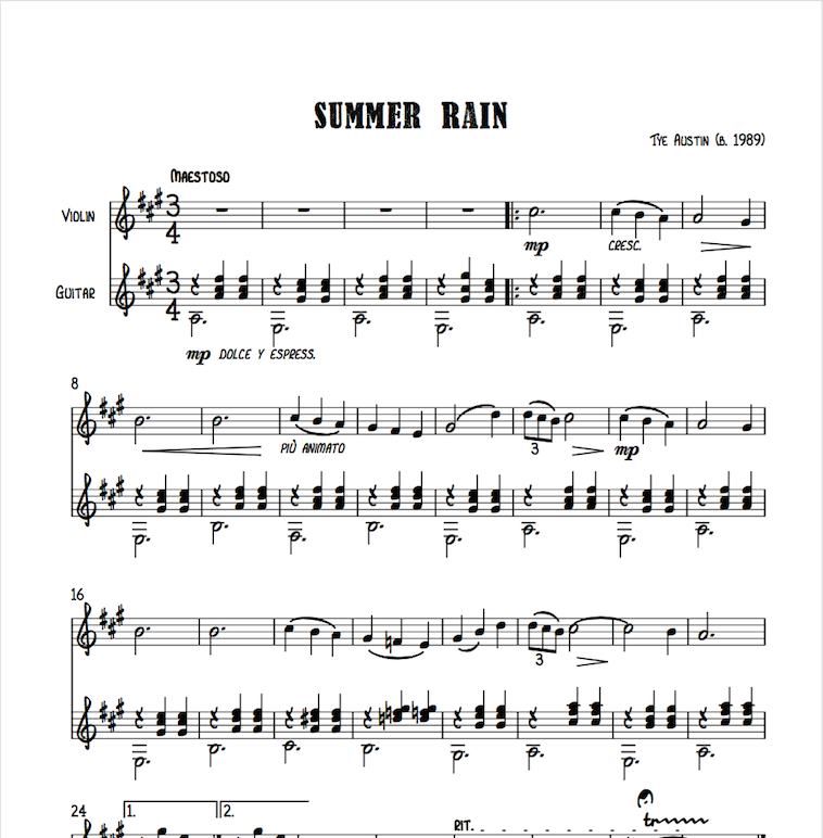 Summer Rain (Prelude) for Violin & Guitar by Tye Austin