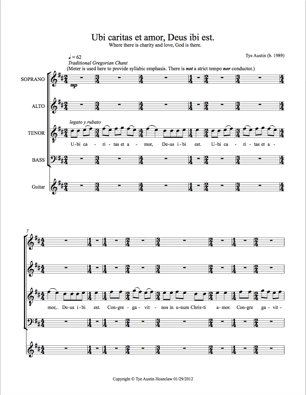 Ubi Caritas for Choir and Guitar by Tye Austin